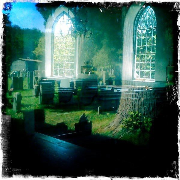 There’s one exception to my photographic mediocrity: a picture I took in Sleepy Hollow, New York, several years ago when we’d gone up to visit my wife’s family. We were being all touristy in the village, checking out the churchyard cemetery where Washington Irving (of Ichabod Crane and the Headless Horseman fame) is buried. The church itself was quite old and rather lovely, that it was closed at the time. Undaunted, I used my phone (and a photography app called Hipstamatic) to take a picture through the window. I ended up picking up a reflection from te window, creating an effect that I was tremendously pleased with: