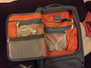 There’s another compartment on the bag with mesh organizer pockets, perfect for storing headphones, writing utensils, and other odds and ends.
