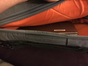 My biggest complaint is the balance of the bag. Because it has the hollow, hard-shell compartment at the bottom for your power cable, the bag ends up being top heavy and falling over easily. You can remove the hard compartment from the bag, making the main pocket deeper if you want, but then where do you put your power cable? But it’s a small problem, considering I usually lay the bag down and slide it under my desk while I’m at work.