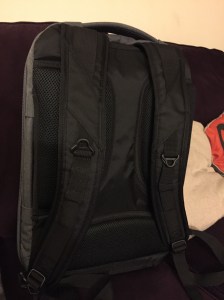 First, it’s a sturdy, well-made bag. The zippers and stitching all appear to be high quality, and it’s well-padded in all the right spots. It had one of those across-the-chest clips connecting the shoulder straps, which I hate, but that was easy to remove. The straps themselves sit comfortably on the shoulder and slip or slide around. The back of the backpack has a similar cushioning/ventilation setup as most Swiss Gear backpacks, which is nice.